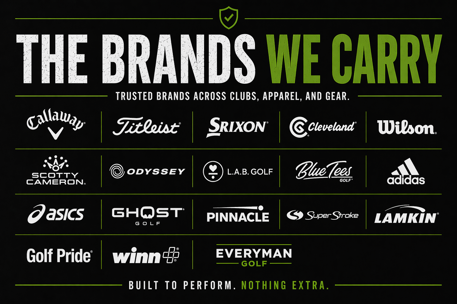 Everything you need, all in one place. From clubs and putters to balls, bags, gloves, and everyday gear, we carry a wide selection built to perform. That includes rangefinders, golf watches, and speakers to round out your setup. Our lineup features top brands like Callaway, Titleist, Srixon, Cleveland, and Wilson, with everything you need to upgrade or build out your entire bag.